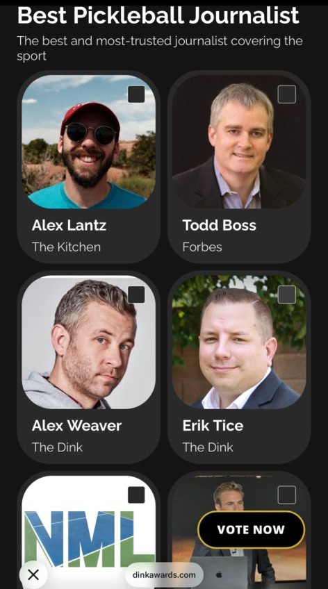 We were surprised and honored to be one of the six nominees up for The Dink Award’s “Best Pickleball Journalist” (you can vote for us here!) especially when we will forever push back against calling ourselves journalists, but the bigger point is that the list is so small of people covering the sport. It’s already hard enough for members of the media to make a comfortable living covering well-established professional sports and there isn’t close to enough money right now in pickleball to sustain a deeper roster of relatively independent content.